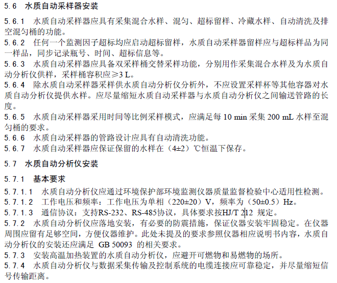 國家省市的新環保標準要求,《河南省地方標準DB41/T 1171—2015水污染源自動監控基站建設技術規范》,第五章第6節和第7節要求如下,